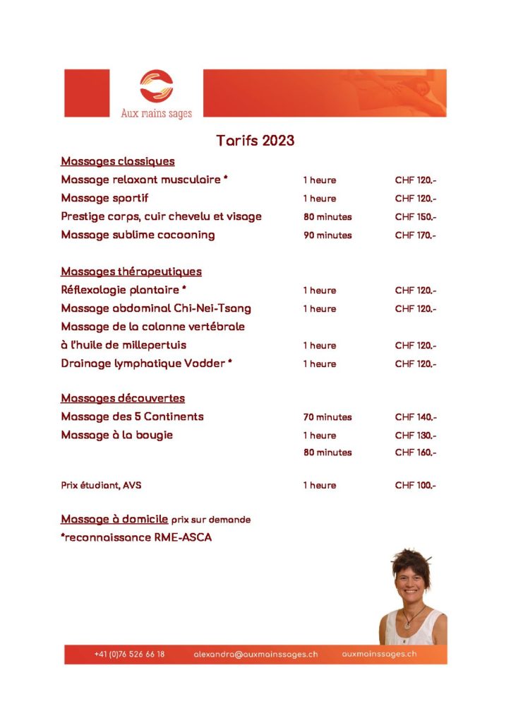 - Tarif: CHF 30.00 la séance
